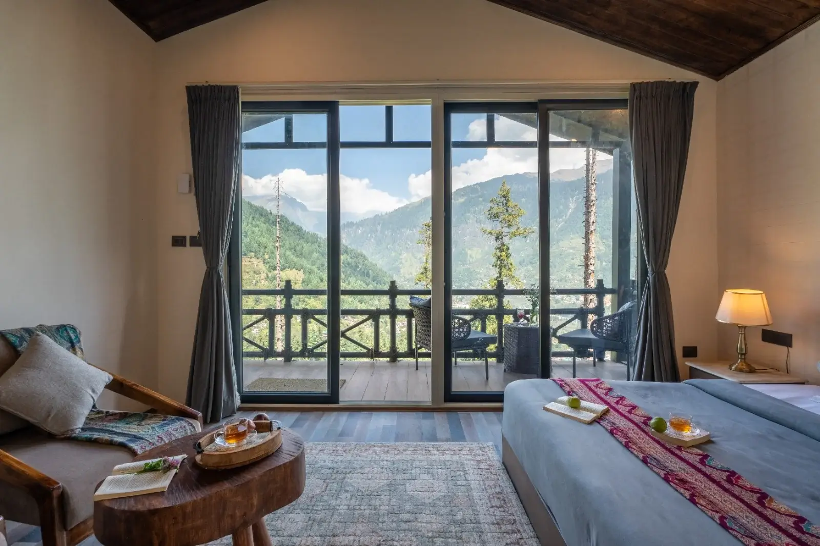 Handcrafted Premium Chalets with private balconies with panoramic Rohtang peak views