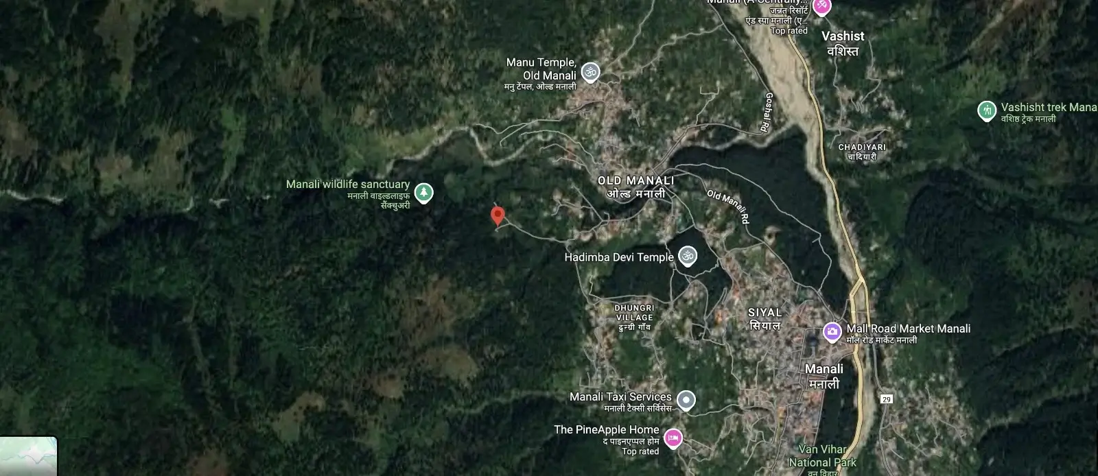 From Delhi (approximately 12–13 hours / 540 km) and Chandigarh (around 7–8 hours / 300 km), guests can travel via NH3 or NH154. Private cars, Volvo buses, and cabs are the most convenient ways to reach the property. Wild Retreat, Manali is located around 15 minutes (5 km) from Mall Road, Manali, nestled close to the Manali Wildlife Sanctuary.